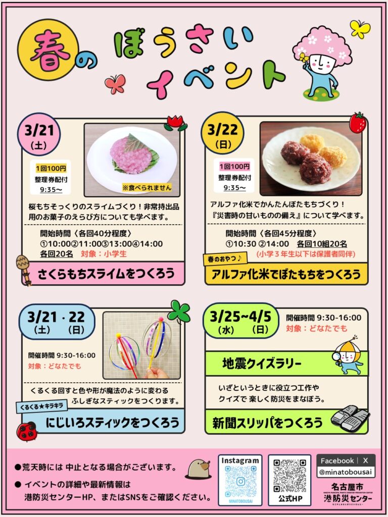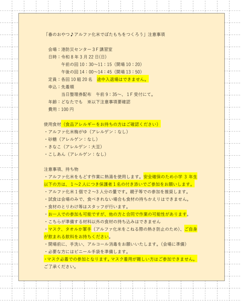 3/22(日)春イベント「アルファ化米でぼたもちをつくろう」にご参加の方へ