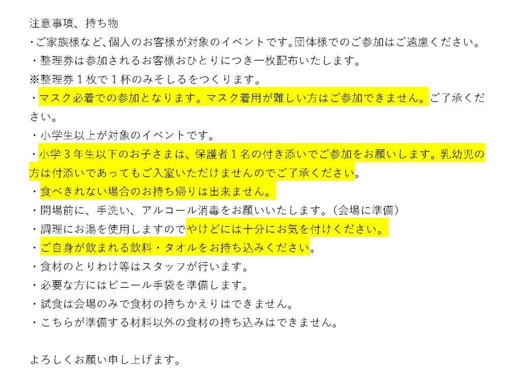 1月11日(日)「オリジナルみそ汁をつくって食べてみよう」にご参加の方へ