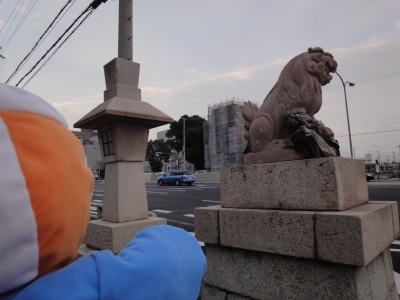 ちょっと寄り道、震災のあと金属になった鳥居だるー。さて、もう夕方だる!